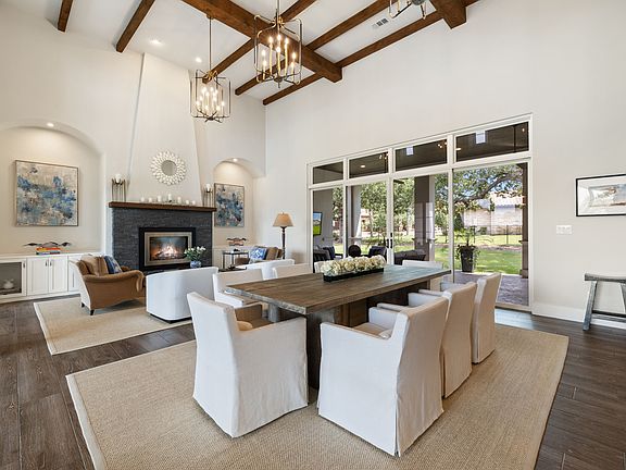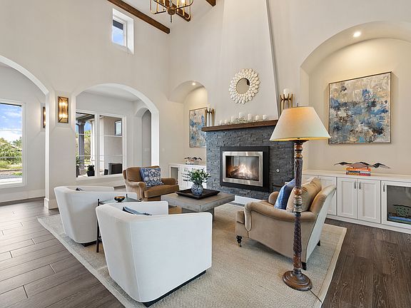 Expansive windows in the entry corridor provide natural light and picturesque views of the tranquil front courtyard. The great room, dining space, and kitchen meld function and aesthetics in one large, flowing space for a comfortable, easy way to live and entertain. Custom stained vent hood, white and blue cabinets, and unique metal tile backsplash give the kitchen a distinctively, custom look. This chef's and entertainer's kitchen is thoughtfully equipped with double ovens, a built-in stainless steel refrigerator, and an undercounter ice machine, providing both functionality and style. The owner's suite with a private, back corner location is styled in a manner that creates a tranquil, calm retreat. A game room/second living space has access to the large covered patio and outdoor kitchen. The covered patio is anchored by stately, square columns and shaded by magnificent grand trees. A large dedicated office is located near the front of the home and has its own private entry. The laundry room has abundant cabinet and counter space and functions like a large butler's pantry with laundry appliances. Owner improvements in the three car garage include epoxy floors and custom built-in storage. Luxury lifestyle in this country club community with Jack Nicklaus Signature golf, fitness facility, spa, tennis and pickleball. Cimarron Hills is located in the charming, historical town of Georgetown, Texas.