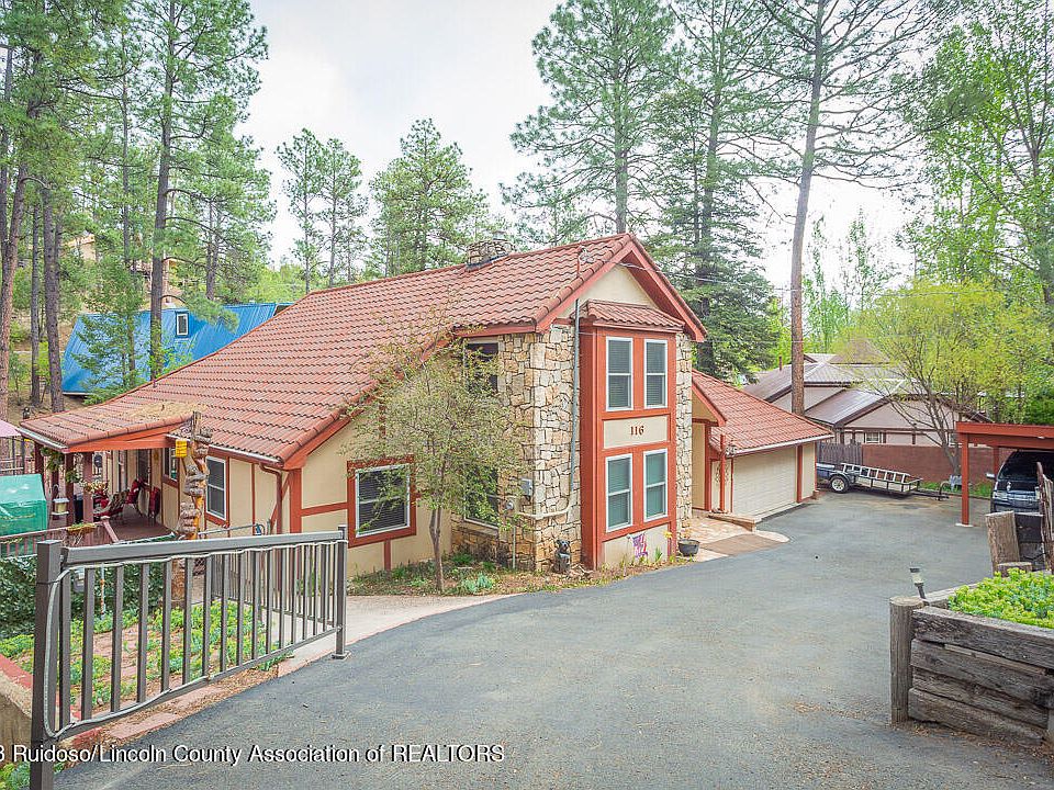 Listen to the water coming off the mountain. Here is your mountain paradise - all wrapped up and ready to go! Beautiful and low maintenance exterior from the very expensive & popular metal/tiled roof to the massive wrap-around Trex decking overlooking the seasonal stream. The cathedral ceiling and one-of-a-kind fireplace and chimney in the great room are original but the home features many modern updates and remodels to create a luxurious getaway or full-time residence. High quality materials and craftsmanship are evident throughout the home. En Suite master bedroom is located on the first/main level along with two other spacious bedrooms for guests. Upstairs loft can be used as a bed, an office, hobby room, etc. The property is partially fenced for your pets already.