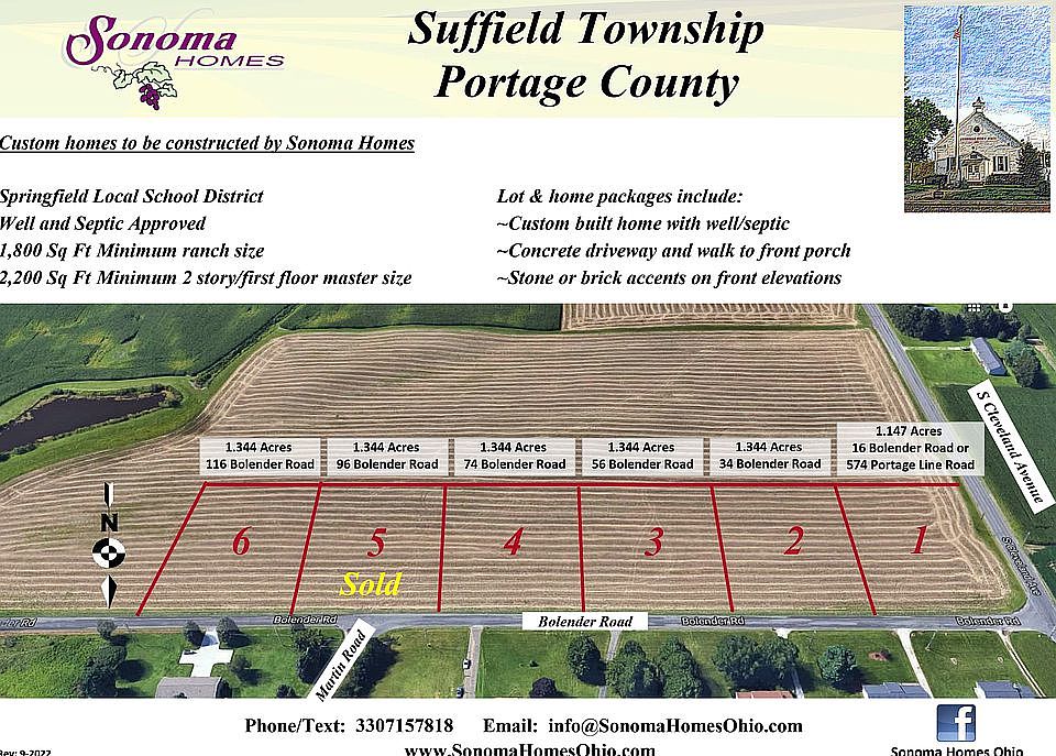 Building lot for new single family construction. Your custom home to be built by Sonoma Homes. No HOA or deed restrictions. Minimum 1800 sq ft ranch or 2200 sq ft two story. Septic/well and concrete driveway will be priced with home and lot package. Natural gas at each lot.