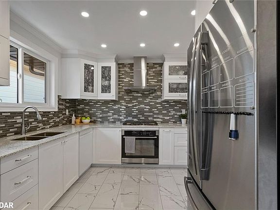 Welcome to this beautifully renovated backsplit in the highly desirable Berrisfield community. This home impresses with modern architectural arches, a gourmet kitchen featuring a custom backsplash, sleek countertops, and stainless steel appliances. Enjoy pot lights throughout, large windows that fill the home with natural light, and a bright open layout perfect for family living. Offering 3 spacious bedrooms plus an additional bedroom and bath on the lower level with a cozy family room.The home also features a versatile gym space that can easily be converted into a second bedroom, home office, or workshop conveniently located off the garage ideal for hobbyists or those seeking extra functional space.Fully equipped with smart Wi-Fi controls, this house offers ultimate convenience including Wi-Fi-enabled switches, garage door, and entrance access all easily managed right from your cellphone.