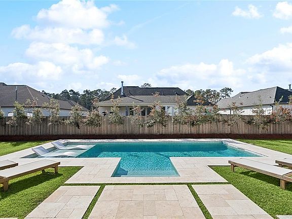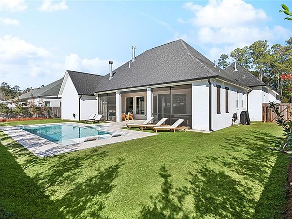 Introducing a stunning custom built home by Hurley Homes in the gated Coquille neighborhood. This exquisite residence has 2744 square feet of luxurious living space, featuring 4 bedrooms, 3 bathrooms plus an office. Situated on a desirable cul-de-sac lot, this home offers an array of high end finishes and amenities.The gourmet kitchen is a chef's dream, showcasing custom cabinets, a custom wood hood vent, quartz countertops, Frigidaire professional and Zline appliances, and a large center island. The beverage bar center with floating wood shelves and beverage cooler adds a touch of elegance to the space. Wood wrapped beams in the living, dining, and kitchen areas create a warm and inviting atmosphere.The primary suite is a true retreat, with a brick feature wall, vaulted ceiling, and a spa like bath complete with a freestanding tub, pass through shower, and custom walk in closet. Two guest bedrooms feature custom wood feature walls, adding character and charm to the home.Step outside to the amazing outdoor living space, which includes a beautiful wood ceiling, fireplace, outdoor kitchen with a Blaze grill, sink, and beverage center, and a motorized retractable screen for enjoying the outdoors day and night. The inground pool with tanning ledge and heater/chiller is perfect for relaxing and entertaining.Luxury vinyl plank flooring flows throughout the main areas and primary bedroom, while decorative tile can be found in the baths and laundry. Designer lighting adds a touch of elegance and sophistication to every room.Don't miss the opportunity to own this exceptional custom home in the sought after Coquille neighborhood in Madisonville.