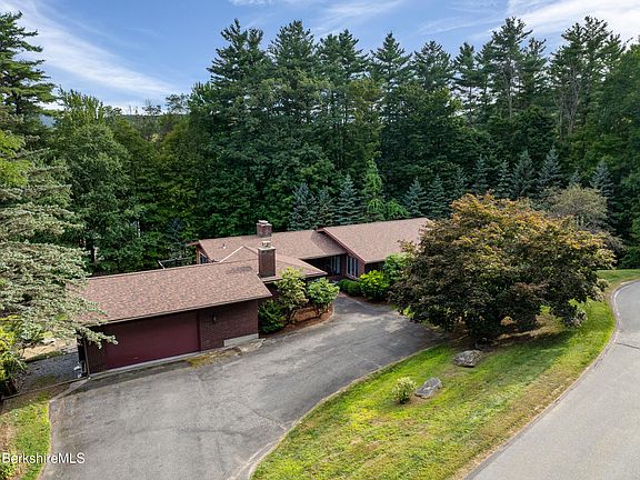 Tucked away at the end of a cul-de-sac in one of Williamstown's most desirable neighborhoods, this 1968 mid-century modern home offers style, space, and convenience on over an acre, ideally located just minutes from the center of town, Williams College, restaurants, and theater. Inside, the main level features 3 bedrooms and 2 baths, including a primary suite. At the heart of the home is a living room with a vaulted ceiling and brick fireplace-an inviting space perfect for gatherings. The elegant dining room flows into a spacious kitchen featuring its own fireplace, seating area, and adjoining laundry room. The walk-out lower level has a 4th bedroom and bath, a recreation room with fireplace, exercise room, and work area. Outdoors, a wraparound deck overlooks the serene landscaping. New roof, new furnace, new deck, all new french doors, new hardwood flooring in dining room