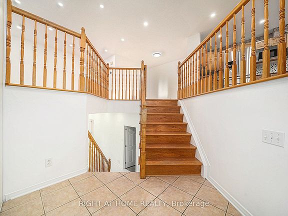 Flooring: Tile, Hardwood. Semi-detached home with a unique "raised bungalow style design." Premium corner lot faced backyard with a walkout lower level. Enjoy the functional open concept living design w/ hardwood flooring. The kitchen provides an eating area w/ plenty of cabinetry & counter space. The master bedroom features a cathedral ceiling. Spacious lower level with family room & cozy gas fireplace, which offers 15" deep cabinets along one wall with two bedrooms, lower level has walkout and can be easily converted to a separate rental unit with the addition of a kitchenette, full bathroom, laundry, tons of storage. In-ground sprinkler system with heads that pop up around the backyard, featuring controls to set date/time, frequency, and other settings. Inside access to an oversized garage, Central Vacuum. This home is in a fabulous family-friendly neighbourhood, walking distance from Longfields Park with play structures, sprinkler pad, & Rugby/Soccer/Softball Pitches. Minutes to local schools, recreation, shopping, restaurants, movie theatre & transit. 2020: Bathroom (both) ceiling fans, 2018: Upper-level bathrooms have been renovated, 2025. Freshly painted, Fence, Backyard patio, home alarm, and Roof 2014. 24 hr. Irrevocable, Flooring: Carpet Wall-to-Wall, Hot Water Tank (2022), Furnace (2022), and AC (2024)