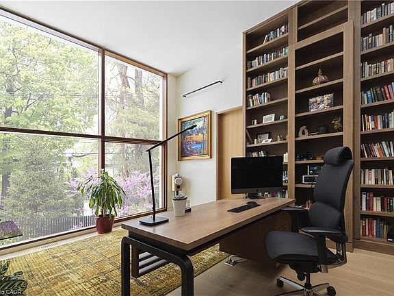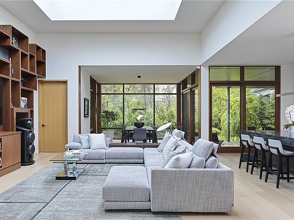 Welcome to 116 Chartwell Road, a stunning Net Zero certified masterpiece in South East Oakville, blending luxury, sustainability, and wellness. Designed by David Small Designs & crafted by Troika Custom Builders, this eco-friendly gem prioritizes your health with a fully sealed envelope, advanced insulation, and a geothermal system paired with a 14.49kW solar array. This ensures clean, energy-efficient living, reducing exposure to pollutants and maintaining superior indoor air quality for a healthier, more comfortable home. Step inside to an open-concept layout bathed in natural light with floor-to-ceiling windows and a striking pyramid skylight. Beautiful wire-brushed white oak flooring with in-floor heating is throughout the home. The gourmet kitchen features a Diamante Quartzite island, custom lacquered cabinetry, and top-tier Gaggenau appliances perfect for healthy, home-cooked meals. Outdoors, a stylish covered patio with a mahogany-clad ceiling, dual Kenyon barbecues, a stainless steel hot tub and surround sound creates an inviting space for relaxation and entertaining. The main floor primary suite is a serene retreat with a walk-through dressing room and a luxurious 5-piece ensuite featuring a steam shower and oversized soaking tub, promoting relaxation and well-being. The home office with garden views and a floor-to-ceiling oak bookcase offers a calming workspace. Upstairs, two spacious bedrooms with ensuites ensure comfort for family or guests. The lower level is an entertainment hub with a fitness room for active lifestyles, a recreation room with a built-in bar and pool table, and an additional bedroom with ensuite. Smart home technology seamlessly integrates audio-visual, lighting, and security systems, controlled via intuitive apps and two master control rooms, ensuring peace of mind. A tandem four-car garage with a hydraulic lift and EV charging, plus extra outdoor parking, speaks to the car enthusiast.