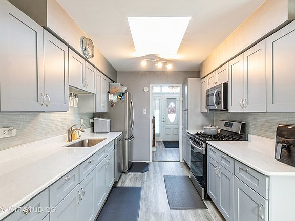 Check out this amazing home that backs up to the County forest preserve. This 4BR/2.5BA home has been continually updated over the years and features hardwood floors, quartz countertops, stainless steel appliances, a wood burning fireplace, master bathroom and a 2-car garage. The standout feature of this home is the great room in the rear of the house. It has wood ceiling planks, ceiling fans, a wood burning fireplace and plenty of windows to view the natural setting in the adjacent Sauk Trail Woods Cook County Forest Preserve. This peaceful, serene setting in the rear of the house has a large open field where wildlife can often be seen. Further up Chestnut Drive is access to the forest preserve trail system. The kitchen features quartz countertops and stainless steel appliances. The bathrooms, including a full master bathroom, were updated in 2021. The home has a detached two-car garage, a vinyl fence was installed in 2017, exterior siding was installed in 2021 and the driveway was recently seal coated. This is a one of a kind home in many ways due its forest preserve adjacent location and layout. Unlike other homes in the neighborhood, the great room adds a lot of space to the home which brings the total size to just over 1,900 square feet. The color selections, fixtures and high quality finishes really set this home apart from the standard rehabs. The lower level has large glass block windows which let in plenty of natural light and the bedroom and adjacent bathroom is an ideal set up for related living. The home is located on the east side of Park Forest and within Steger school district 194. This home will not last long!