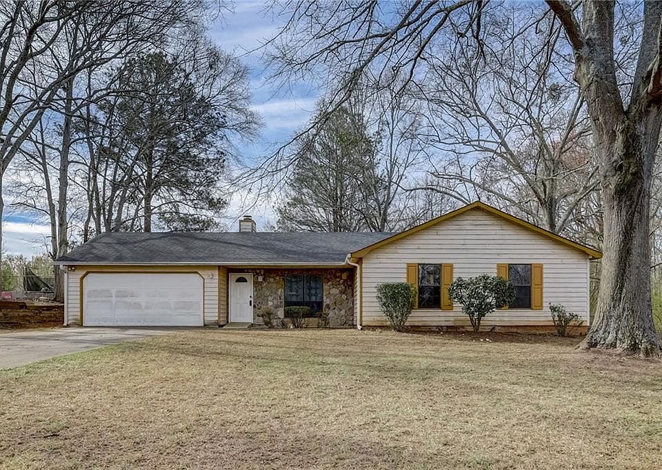 Charming ranch style home with 3 bedrooms and 2 baths with No HOA! One step entry takes you into the living room with an large original stone fireplace. Galley style kitchen with original real wood cabinets and appliances that stay. There is a nice sunroom just off the dining area, perfect for reading or entertaining. New lighting in kitchen, hallway and secondary bedrooms. Ceiling fans in living room and owner's bedroom as well as a walk-in closet. Roomy 2 car garage. Level front and level fenced back yard with lots of green space and mature trees!