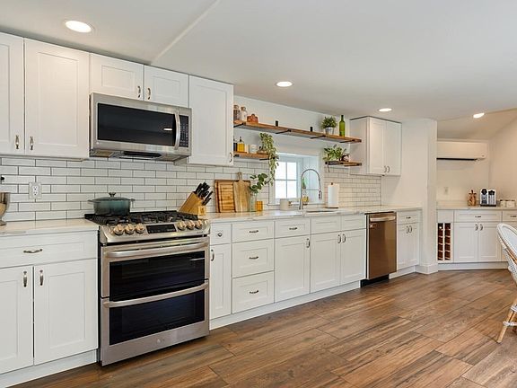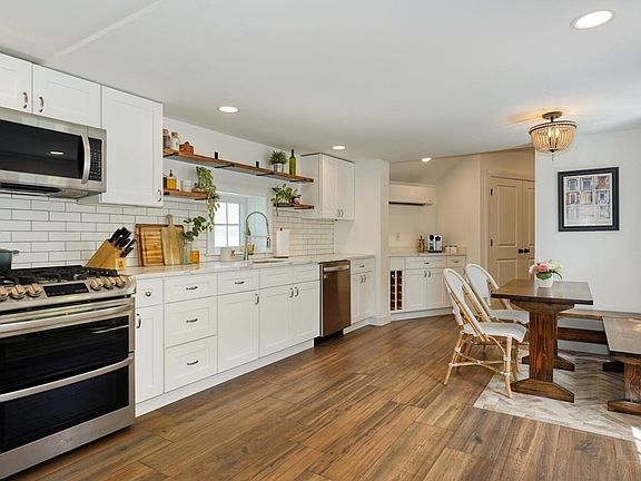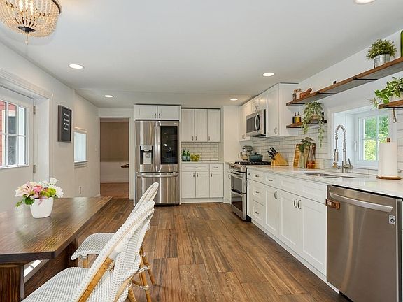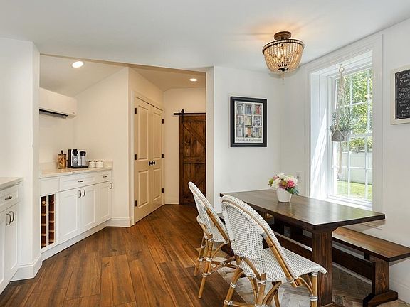 This is the home you have been looking for - a must see gorgeously updated antique in the heart of downtown Holliston. New eat-in kitchen w/ lovely quartz counters, ss appliances, tile floor, coffee bar area, backsplash & new windows. Barn door opens to new bath w/ tile shower/tub, & tile floor. Refinished hdwd & pine floors throughout much of 1st floor. Dining rm w/ built in cabinet & quaint living rm. Family rm w/ chair rail & gas stove (2008). 1st flr office w/ beautiful barn door accent. Head upstairs to 4 bedrooms - primary w/ full tile bath/jacuzzi tub, large walk in closet, cathedral ceiling bedroom, newer windows. Three other bedrms w/ lovely pine floors, each w/ their own mini split. You will fall in love w/ the fenced in yard including 2 stone patios, amazing treehouse, & shed. Fantastic newer septic from 2007, NEST therm and newer water heater. The location can not be beat - walkable to shops, schools, restaurants, rail trail, playground and much more! Don't miss this one!