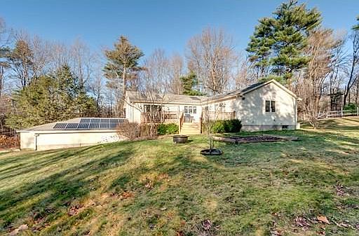 Single level living on private 2-acre lot near Big Alum Lake boat launch. This ranch has high ceilings & natural light streaming through large windows & skylights. Spacious, bright kitchen complete with eat in dining area, triple sink & double oven features raised panel oak cabinets & so much storage! Formal dining room for even more space. Living room boasts stunning quarry stone fireplace. Access to large deck from kitchen & living room. Oak & silver maple HW floors & recessed lighting. 3 generously sized BDRMS & closets. Master BDRM offers 2 walk-in closets, deck access, & large en-suite bathroom w/ skylights, 2 sinks, shower & jacuzzi tub. Additional 1,536 sqft of finished basement houses family room, library, dry bar, bonus room, cedar closet & endless storage. Updates: Anderson windows, gutter drainage, Trex deck. 2 car garage w/ third storage bay. Tesla solar panels. Industrial electrical panels. Use 2-box stall barn w/ paddock for your favorite animals or storage.