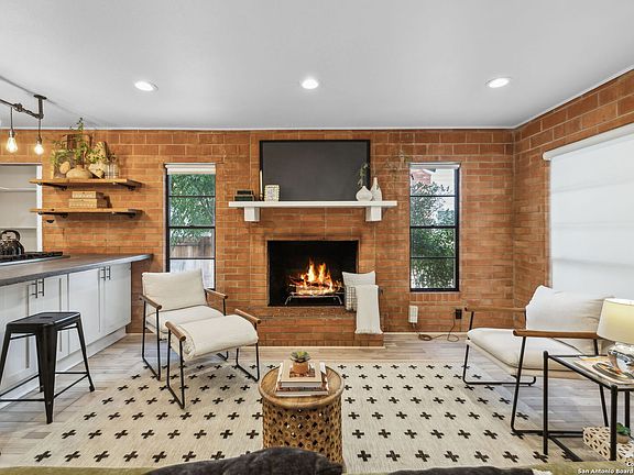Welcome to this inviting, two-story, 3-bedroom, 2-bath home on College Boulevard in Alamo Heights. Sitting on 0.16 acre, this +\- 1,725 square foot brick contemporary features an open and bright floor plan re-imagined with today's living in mind. Downstairs there's a welcoming living room that opens to an updated galley kitchen w breakfast bar, separate dining room and bedroom - perfect as a study or home office - with full bath just around the corner. Upstairs, you'll find a well-appointed primary suite with a spa-like bath featuring a large walk-in shower, separate toilet closet and other nice appointments. There's an ample-sized second bedroom upstairs that shares entrance into the bathroom as well as to the upstairs laundry room adjacent. Bright white paint sits in contrast to a cohesive wood-colored, rustic laminate flooring and original brick wall accents throughout the home. Bathrooms have attractive tile flooring and with smooth countertop surfaces used in both the baths and kitchen. Just off the kitchen, there's a large deck and well-manicured backyard perfect for outdoor living, relaxing and entertaining. Don't miss the two generous storage closets under the home's two-car-covered carport and its freshly painted exterior. Come see this Alamo Heights charmer today.