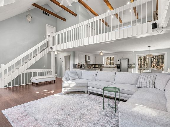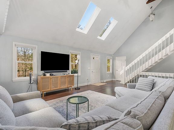 Calling all nature lovers and sunshine seekers! This charming 3/4-bedroom Cape whispers "welcome home" from its peaceful 3.6-acre perch on a scenic Holliston road. Step inside and be wowed by soaring ceilings, skylights, and an open floor plan that bathes everything in natural light. The large eat-in kitchen is a chef's dream with ample prep space, a breakfast bar, and views that flow straight into the living room (complete with a cozy pellet stove!). Sliding doors whisk you out to a deck leading to a picture-perfect patio and sprawling yard – perfect for epic backyard barbecues! Two bedrooms and a full bath complete the dreamy main level. Upstairs, a loft-style space awaits – perfect for a family room, bonus hangout, or a home office with a view. The primary suite with its recently renovated bathroom is your own private oasis. Need more space? The walk-out lower level boasts an office, laundry area, and a large two-car garage. Conveniently located near 495, don't miss this gem!