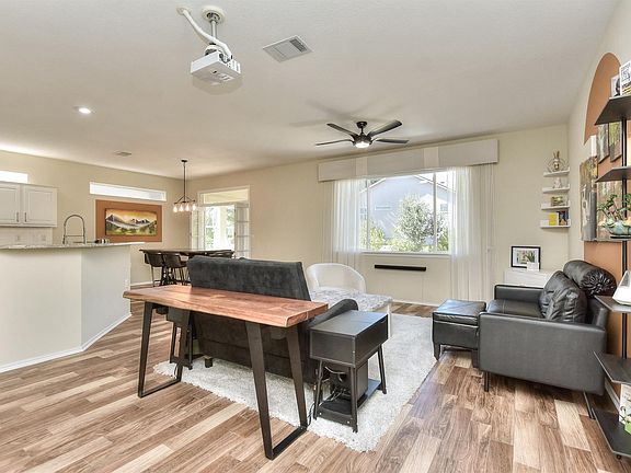 Modern styleEpoxy floorOpen floor planUpdated light fixturesEpoxy-covered back patioCeiling fansPrivate office