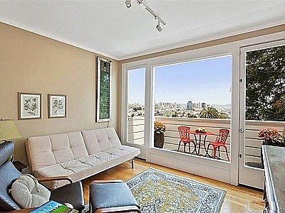 Elegant 1889 Victorian 2bd/1ba condo in desirable Buena Vista neighborhood. This very special property has sweeping views of the City & beyond, high ceilings, period details, hardwood floors, outdoor patio. Warm & welcoming living room w/beautifully tiled wood burning fireplace, built in bookshelves. Dining room is ideal for large dinner parties w/attractive beamed ceiling & tall Bay windows. Bright, updated kitchen w/2 large windows & partial downtown views, tile finishes, gas range, built-in dishwasher. In unit laundry w/storage. 2nd bedroom leads to private patio w/pano views of downtown SF & beyond. No stairs to front door makes this very convenient. One of SF's premier neighborhoods. Close to Muni Metro, shops. 91 Walk Score.