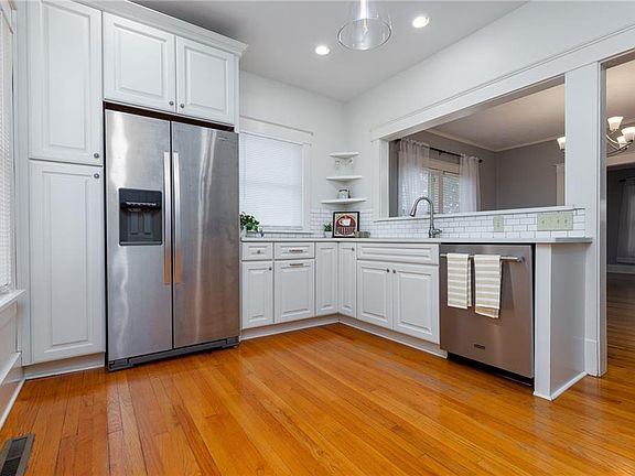 Don’t miss this charming historic bungalow in the heart of Downtown Liberty! From the welcoming front porch to the timeless details inside, this home is full of character. Step into the main level where you’ll find hardwood floors, updated lighting, and a bright living and dining area. The kitchen has been refreshed with newer cabinets and stainless steel appliances.