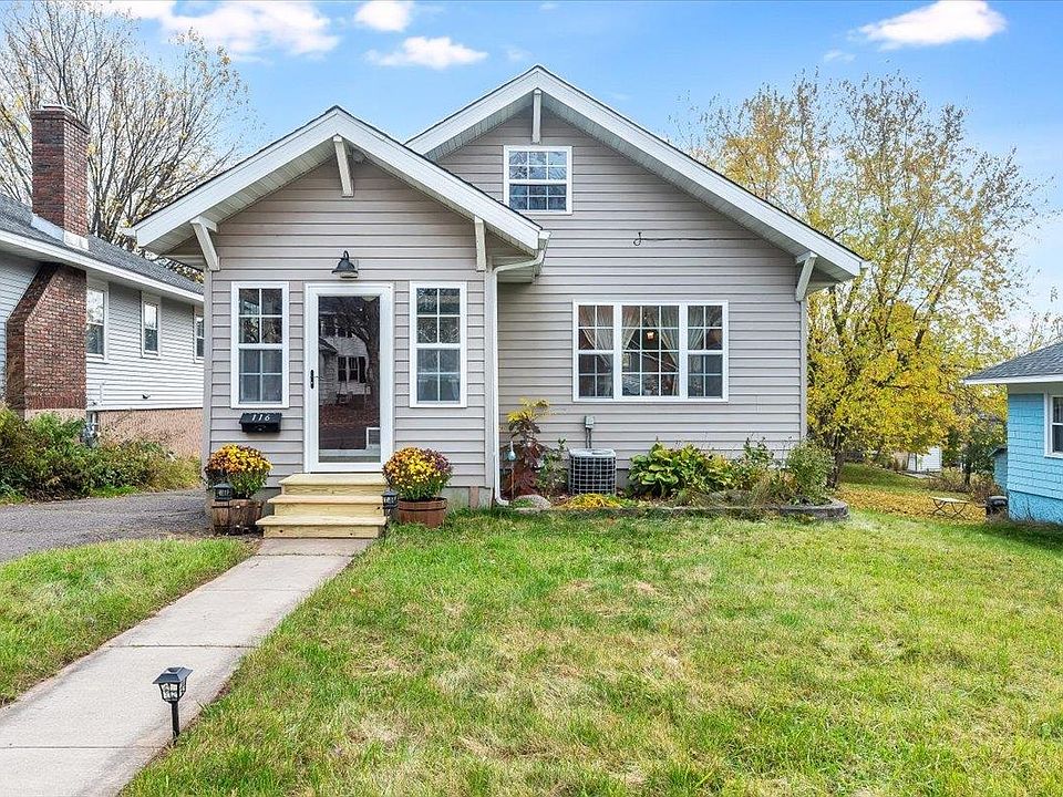 Welcome to 116 E Mankato St in Duluth, MN—a beautifully preserved bungalow in the Woodland neighborhood. This move-in-ready 4-bedroom, 2-bath home spans 2,101 sq ft, blending timeless charm with thoughtful modern updates. Perched on a generous 50x150 lot, it offers a walk-out basement, lush lawn, and easy access to Duluth's outdoor wonders.The exterior welcomes you with light gray vinyl siding, a classic gabled roof accented by crisp white trim, and inviting wooden steps leading to a vibrant blue front door framed by a pergola archway. Mature trees shade the home, while a side deck provides a perfect spot for morning coffee. An AC unit ensures year-round comfort, and there's ample space for gardening enthusiasts. The oversized 24x32 detached 2-car garage is a standout feature, complete with asphalt parking, electricity, insulation, and abundant storage—ideal for vehicles, tools, or transforming into a workshop.Step inside to a tiled mudroom entry with a built-in bench, open shelving, and a rustic coat rack for everyday convenience. The main floor flows seamlessly into a warm living room with gleaming hardwood floors, a painted brick fireplace, large windows, and a ceiling fan. Adjacent is the dining area, highlighted by wooden floors. The efficient galley kitchen boasts oak cabinets, durable laminate counters, a tiled backsplash, stainless steel sink, and dishwasher. Two bedrooms on this level include the primary with deep blue walls; and a second with soft blue walls. A full bathroom completes the main floor, featuring a tub/shower combo. Open stairs lead to the upper level, where you'll find an additional bedroom with gray walls —ideal as a guest room or office—plus a versatile bonus rec space for a den, craft room, or rest area with extra storage.The walk-out basement expands your living options with a cozy entertainment room, dedicated laundry area, utilities, bedroom, and direct garage access. A convenient 3/4 bath with walk-in shower adds functionality.Nestled in Woodland, this home is a nature lover's dream. Stroll to Hartley Park's 660 acres of trails, ponds, and scenic views; the Superior Hiking Trail; Chester Creek paths; Ridgeview Country Club; or the Woodland Rec Center. Duluth's iconic waterfalls, beaches, Lakewalk for biking, and the Munger Trail are all nearby, with over 85 miles of citywide hiking and multi-use trails at your doorstep. 3D Tour: https://unbranded.youriguide.com/116_e_mankato_st_duluth_mn/