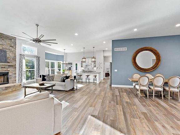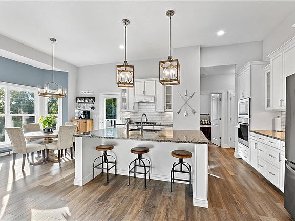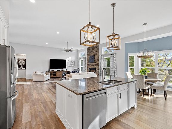 This stunning 4-bedroom, 3.5-bath former display home offers the perfect blend of modern elegance and comfortable living with an open-concept layout that floods with natural light. Greeted by the living room with 11ft ceilings and a stylish floor to ceiling stone fireplace that flows seamlessly to the dining room and dream gourmet kitchen with access to covered deck overlooking brand new paver patio with custom stone retaining walls and firepit, and beautifully landscaped yard with peaceful wooded backdrop. The primary suite offers a private retreat with a luxurious ensuite bathroom and is divided from secondary bedrooms, all with new LVP flooring. The newly finished walk out lower level provides additional living space, complete with recreation room, home office or 4th bedroom, luxury full bath with heated floors, built in storage and workshop area. With a 3-car garage and contemporary finishes throughout, this home is a must-see for those seeking luxury and comfort