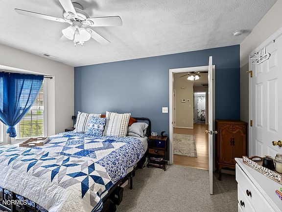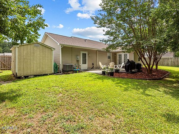 Welcome to this inviting 3-bedroom, 2-bathroom home located in the Indian Woods Park neighborhood. From the moment you enter onto the inviting front porch, you'll feel right at home. Inside, the spacious living room boasts a cozy fireplace, perfect for relaxing evenings. The kitchen, complete with stainless steel appliances, opens up to the dining area, creating a seamless space for entertaining. Each of the three bedrooms offers ample space, ensuring comfort for all guests. The owner's suite includes an en-suite bathroom for added convenience. Head outside to find a charming patio, ideal for grilling and outdoor dining, overlooking a massive fenced-in backyard—perfect for pets, play, or gardening. Situated between Historic Downtown New Bern and MCAS Cherry Point, this home offers the perfect blend of peaceful suburban living with easy access to vibrant city amenities and military facilities. Don't miss the chance to make this delightful home your own! Call us today for your private tour!