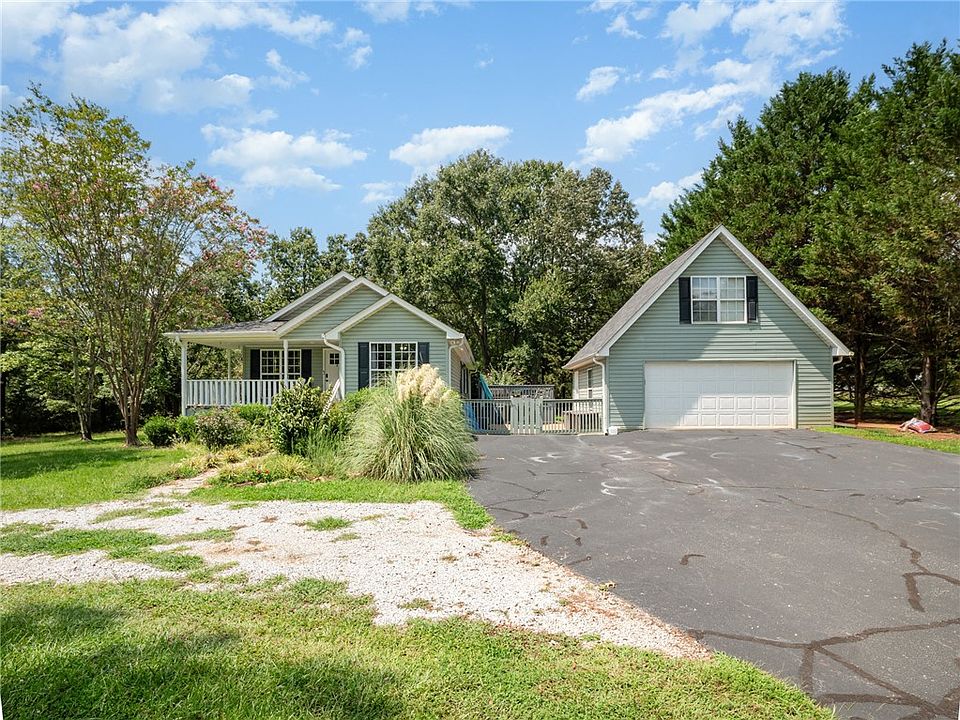 Welcome home to this 3 bedroom, 2 bath retreat nestled on 0.65 acres. A spacious 2-car detached garage with an upstairs storageroom offers plenty of room for vehicles, hobbies, or a workshop. The kitchen, complete with all appliances, opens with a convenientpass-through to the living room—perfect for entertaining. The master suite boasts a walk-in closet and tub/shower combo, while theentire home is designed with low-maintenance flooring and no carpet. A tankless water heater provides modern efficiency. Stepoutside to enjoy the deck and patio, ideal for relaxing or gatherings, all set on a quiet private drive that offers peace and privacy.