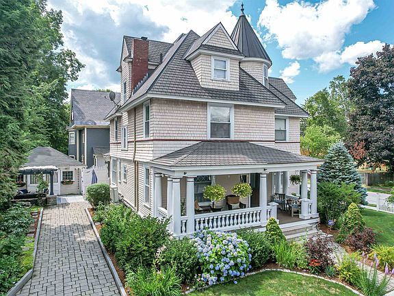 Price reduced! Absolutely stunning, this exquisite Victorian located in Manchester’s North End will leave you feeling enchanted. Enjoy a warm summer's breeze relaxing on the on expansive front porch then head inside to discover a remodeled gourmet Kitchen with maple cabinets, Wolf and Subzero appliances, double wall ovens, professional grade vent hood with restored stain glass from the late 1800’s, quartz countertops, Victorian period lighting, filtered water station, and dual zone wine fridge. Next to this spectacular kitchen you will discover a mudroom with a built-in pet feeding station with running water and automated lighting. The first-floor half bath features designs by Thomas Crapper, adding historical charm. Upstairs you will discover 3 additional spacious bedrooms. The primary has a beautifully updated en-suite and one of the bedrooms has been converted into a dressing room with a custom designed closest system w/cedar closet. The finished 3rd floor is its own oasis with a bedroom, living area, bathroom and a charming office space in the turret. Several upgrades include energy efficient windows, hickory and oak wood floors, new gas furnace, Fujitsu mini splits systems, and Sonos integrated speakers in kitchen and dining. Step outside and be transported into English Garden with a cobblestone driveway, Pergola with custom LED lighting, outdoor kitchen and the original carriage house. This home is also the winner of the 2020 Homeowner's Preservation award ! A MUST SEE