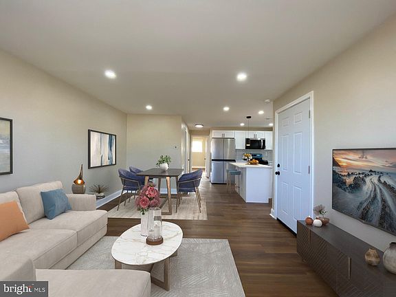 Duplex in Folcroft for sale. Each unit offers open space living, dining room, two bedrooms, one bathroom, and one car garage.