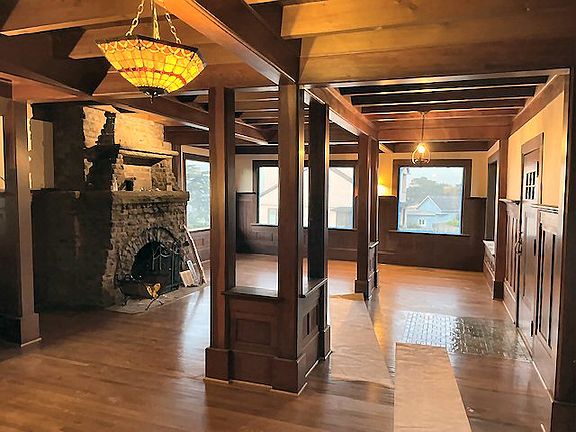 Have you ever wanted to live in an exceptionally restored Craftsman home replete with tranquil dark wood paneling and a massive wood burning clinker brick fireplace? There's one for rent in Pacific Grove next to the Monterey Bay with lovely bay views. Enter on the side of the house into the redwood trimmed living room, look to the right at the Bay through the three large windows, and to the left at the elegant dining area with its built-in hutch and period lighting. Go through the door into the modern kitchen, laundry, half-bath or up the stairs to the three bedrooms, two bathrooms and office with their own water views.