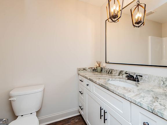 Stunning New Construction in a Prime Location! Located between Warner Robins and Macon/NewTown, this beautiful new home features a spacious open floor plan with a large great room open to the kitchen. The kitchen offers custom cabinets, granite countertops, a large island with seating for five, and recessed lighting. Just off the kitchen is a dining room with detailed trim including chair rail molding and judges panels, with access to the covered patio. The owner's suite includes a custom vanity with double sinks, solid-surface countertops, a built-in linen closet, and a walk-in shower. Exterior features include a brick front with low-maintenance vinyl siding, a covered front entry, a covered back patio, professional landscaping, and a large 2-car garage. This home is move-in ready and offers the perfect blend of style, comfort, and convenience.