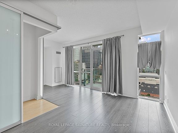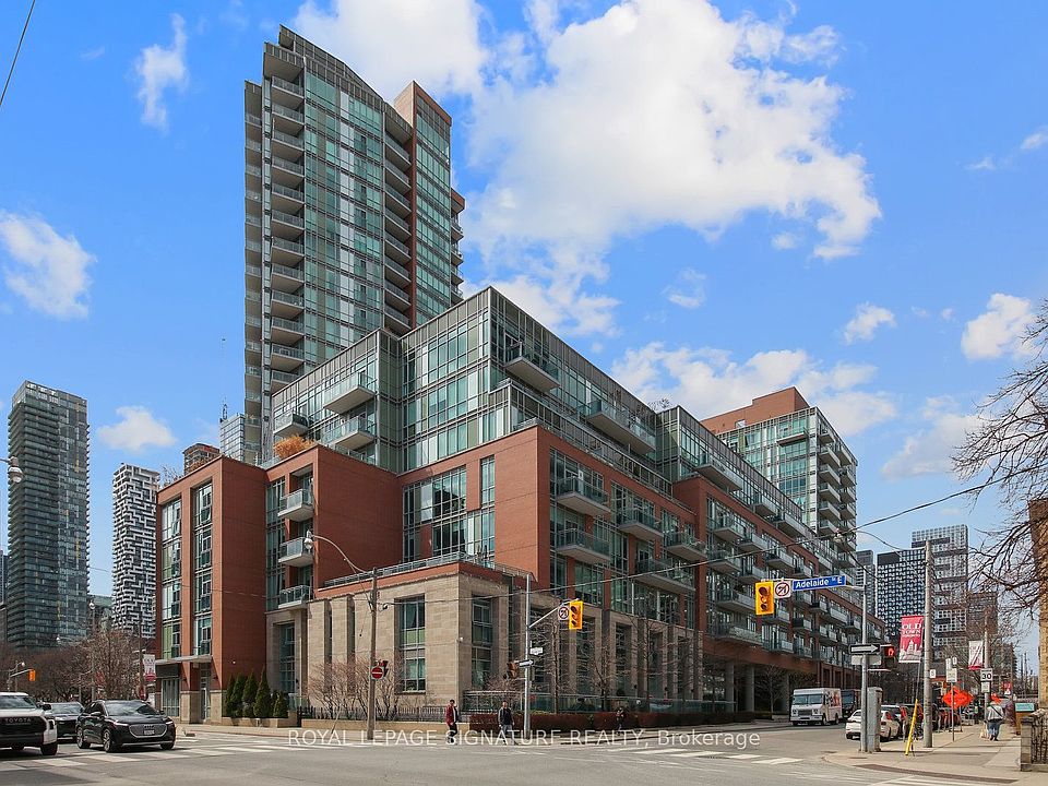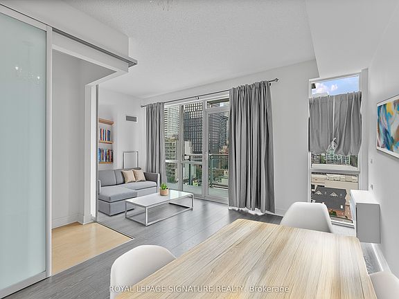 Step into this sun-filled one-bedroom suite at Vu Condos, offering stylish downtown living in a well-managed and well-maintained building. Move-in ready unit features a functional floor plan with upgraded neutral-tone flooring throughout, a welcoming foyer with pantry storage, and a modern eat-in kitchen with updated stainless steel appliances and a new washer and dryer. The living room boasts large windows with views of Moss Park and includes a separate area ideal for work-from-home days. The spacious primary bedroom provides added storage and comfort, while the ensuite bath features a large vanity and mirror. Perfectly located just one block from the future Ontario Line subway station and steps to St. Lawrence Market, St. James Park, the Distillery District, Eaton Centre, the waterfront, quick access to the Gardiner Expressway. Shops, restaurants, entertainment, and community library all within walking distance. Excellent amenities including two gyms, party rooms, a rooftop terrace, and more!