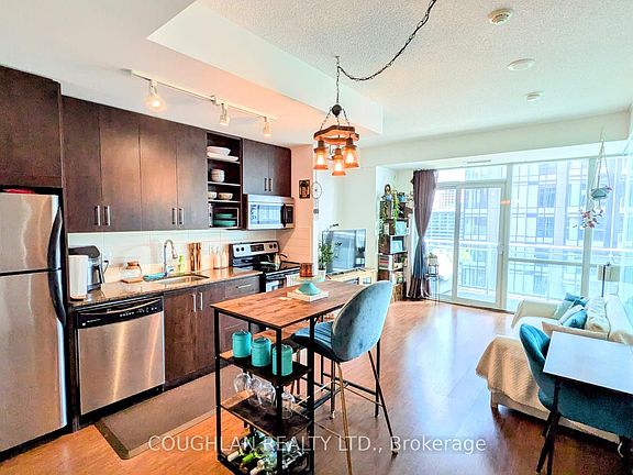 Step into this bright, cozy, sun-filled suite in the St. Lawrence neighbourhood that combines indoor and outdoor living! Corner unit with more privacy! This unit comes furnished with ensuite laundry, modern kitchen with full size stainless steel appliances and 4 piece bath and separate bedroom. Carpet-free with Laminate flooring. Floor to ceiling windows throughout the unit, high ceilings, extra long full-sized undivided balcony (18'7x5'5) providing north, east, and southerly exposure and a partial view of Lake Ontario. Living room slide-out sofa that sleeps 2 with extra storage. Bedroom comes with extra-large closet. Rooftop patio with BBQ's, lounge chairs and outdoor cooking space is the perfect place to bring guests to relax or host your parties and enjoy breathtaking views of the Toronto skyline. Amenities include 2 gyms, 2 yoga/exercise rooms, party room with full kitchen, games and library room. This condo also provides full guest suites at a cost for those needing extra room for guests to stay. 1 Parking spot conveniently located close to the elevator) and storage locker included for tenant use. Walking distance to St. Lawrence Market, steps to St. James Park, 10 min walk to King St. Subway, Easy access to DVP and Gardiner Expressway.