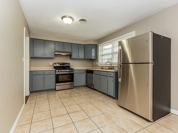 The kitchen stands out with tile flooring, generous counter space, and ample cabinetry. Stainless steel appliances, including a brand-new dishwasher, make daily tasks more efficient and enjoyable.