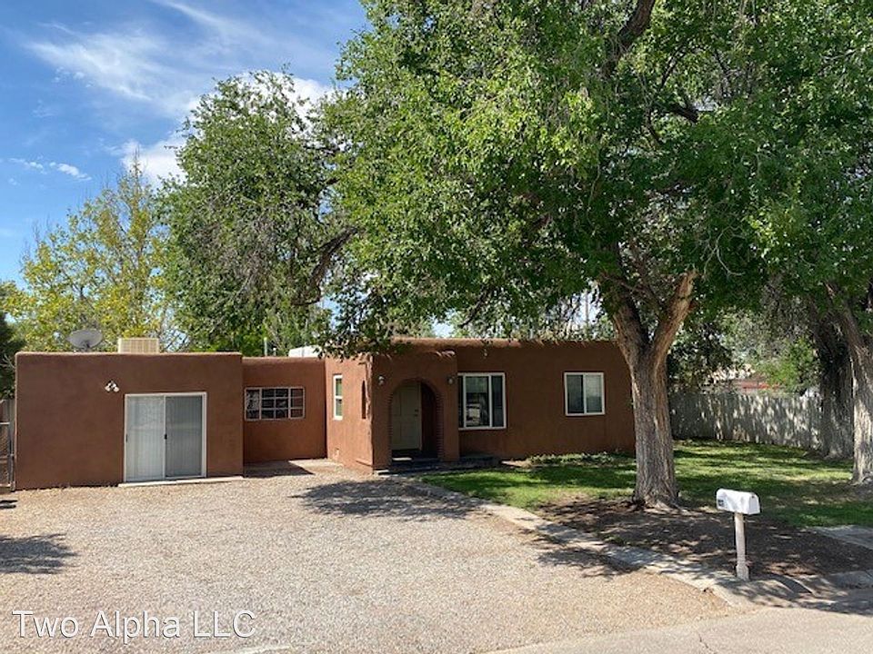 Family Home in Los Ranchos for Rent! - Beautiful and spacious 4 bedroom, 2 full bath, 1,720 sq ft home in a desirable Los Ranchos neighborhood located in the North Valley.This Home is truly a gem! The roomy Primary Suite boasts a large walk-in closet plus a remodeled bath. Kitchen opens to the living area to create a large Great Room. You'll love the spacious deck overlooking the gigantic fenced-in backyard with large shade trees. Custom paint, hardwood flooring and carpet. Amenities include refrigerator, dishwasher, gas range, garbage disposal, and dryer (washer hookup included). Central heating and two cooling units. Irrigation system. Plenty of off-street parking. First and Last Month's Rent, $1,000 security deposit, $300 pet fee (if applicable) (RLNE5932521)