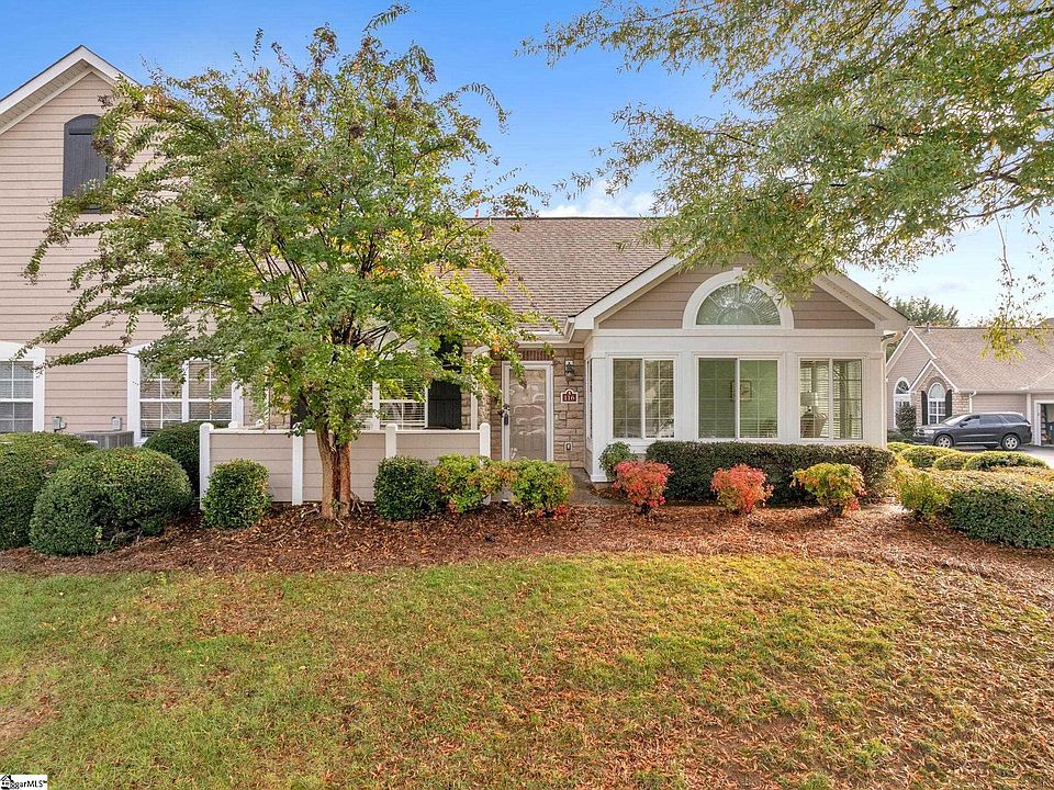 Welcome to The Ravines at Spring Mill, a premier community nestled in Greenville’s highly desirable Eastside! This spacious 3-bedroom, 3-bath condo offers a bright, open layout and a truly maintenance-free lifestyle. The main floor boasts a thoughtfully designed split floor plan featuring two generously sized bedrooms, each with its own full bath. The primary suite offers a private retreat, while soaring vaulted ceilings and large palladian windows fill the home with natural light. The inviting living area, complete with a gas-log fireplace, flows seamlessly into the dining space and a casual bar-top seating area. A sun-drenched sunroom provides the perfect spot to relax or entertain guests, while a versatile office space can easily double as a formal dining area. The kitchen is well-appointed with double pantries, ample cabinetry, and convenient access to the laundry room, which includes a utility sink. Upstairs, guests will enjoy their own private retreat with a spacious bedroom, oversized closet, walk-in attic storage, a built-in wet bar, and a full bath—perfect for hosting visitors or creating a secondary living space. The Ravines at Spring Mill is renowned for its vibrant, close-knit community. Residents enjoy access to a pool, fitness center, and clubhouse that regularly hosts potlucks, book clubs, game nights, and more. Additional highlights include a two-car garage with extra storage for seasonal decor and exterior maintenance provided by the HOA. Located just minutes from shopping, dining, and medical facilities, this home offers unparalleled convenience and lifestyle. Don’t miss your chance to own this exceptional condo. Schedule your showing today and experience the charm of Greenville’s Eastside living!