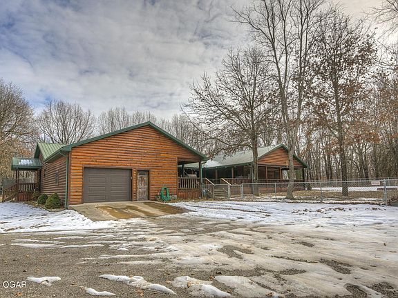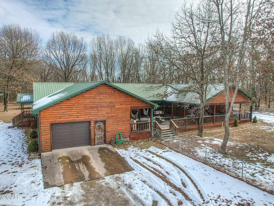 Incredible log home retreat on 30 acres, less than half an hour from Northwest Arkansas! Custom-built, 5 bedroom home on one level, featuring custom cabinetry, granite countertops, a cozy wood burning fireplace, and a detached 30x30 workshop for your tools and toys. Enjoy this hunter's paradise with 30 wooded, rolling acres. Entertain your guests with 2 living areas, a large kitchen island, and stainless steel appliances. In-ground storm shelter in the garage for the ultimate peace of mind! Wake up every day with a gorgeous view and a spa-like experience in the primary suite that has a custom walk-in tile shower. You will love everything about this home. Call today for a tour and make this one all yours!