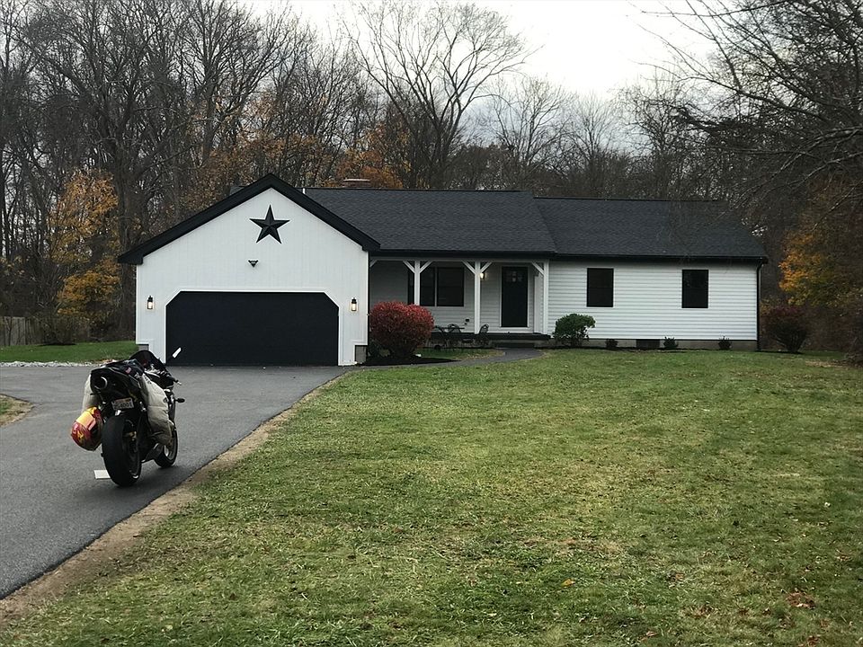 Oversized remodeled expansive ranch approx 2600 sq ft with stunning In-law set up. 5 bedrooms w 2.5 bathrooms. Open floor plan. Cathedral ceiling with exposed beams stunning kitchen w granite countertops, Upscale appliances. Dual fireplace w wood burning stove. New roof, driveway, decks, patio. New black windows, heating system and oil tank. New 30 yr Hardie board siding, Stone Entertainment features through out. Beautiful fully tiled bathrooms. This is truly a " must see" property.