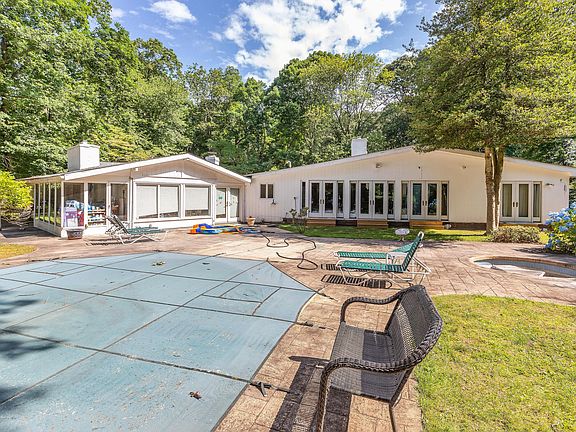 Finishing touches! Designed to blend with nature this California ranch with Mid-century influence was renovated to perfection. Long private drive leads to this perfectly unique 4 bedroom 3 bath home. Dramatic exposed white beam ceilings throughout and wide plank floors, where sliders and new windows let the outdoors in at every glance. Eat in kitchen with shaker style cabinets, stainless steel appliances and large floating quartz island opens to dining room and open concept living room with large stone fireplace and wet bar. Private master bedroom and bathroom which includes separate shower, soaking tub, custom beautiful tile and walk in closet! Another bedroom/office with full bath. Other side of the home find a sun filled family room with with full bath, fireplace and two more perfect bedrooms! Salt water pool and spa surrounding by 3 acres completes this amazing move in ready property with two car detached garage. Located in the prestigious Hartshorne Woods park with 790 acres of hiking and biking paths out your door, kayaking, wildlife and minutes to Rumson restaurants, Sea Streak ferry for easy commute to city, beaches and award winning schools! 2022-02-15