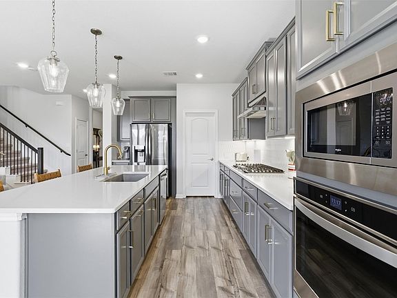 Stunning 5-Bedroom Home w/ TRUE Dual Primary Suites (12'11"x20'5" and 13'11"x18'6") Welcome to 116 High Mesa, a thoughtfully designed home offering maximum space for modern living. Featuring 5 bedrooms, 3.5 bathrooms, and 2 living areas, this floorplan is perfect for multi-generational living or hosting guests. As you approach the house, you will noticed the beautiful curb appeal and a long front porch, perfect for enjoying the morning coffee or afternoon tea. The main floor boasts a spacious kitchen with quartz countertops, stainless steel appliances, custom backsplash, and custom pendant lights over the grand island, seamlessly flowing into the living area overlooking the backyard—ideal for entertaining. The eat-in kitchen and adjoining dining area provide ample space for gatherings. The main-level primary suite features a luxurious bath with double-sink vanity and extended walk-in shower, while a 5th bedroom currently serves as a home office. Additional main-floor amenities include a powder room and laundry room for convenience. Upstairs, you’ll find a versatile flex space perfect as a media room, game room, or secondary living area. Another primary-style suite with a walk-in closet and full bath offers comfort and privacy. Two additional bedrooms, each with walk-in closets, share a full bathroom, completing the upper level. The spacious backyard features 2 patios - covered and uncovered with ample entertaining spaces plus a vegetable garden. Located in the prestigious Morningstar community, residents enjoy resort-style amenities including three pools, basketball and soccer fields, zip lines, a stocked fishing pond, multiple playgrounds, pavilions, and scenic nature trails with fitness stations. The home is zoned to highly rated Santa Rita schools—all without the higher Santa Rita HOA fees—making this property an exceptional value in the Georgetown/Liberty Hill area. Experience the perfect blend of space, style, and comfort at 116 High Mesa.