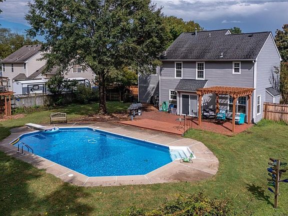 Spacious backyard with inground pool and water access for kayaking. Freshly re-painted and brand new carpets! Pool liner and cover from 2020. Large open kitchen with pantry. Large primary suite with vaulted ceiling & primary bathroom with double sinks. 4 Bed 3 bath. Applications are required before showings.