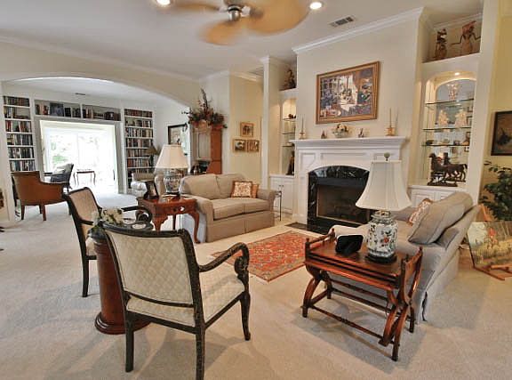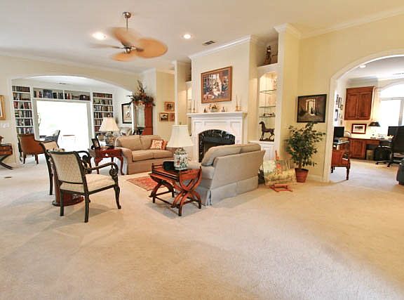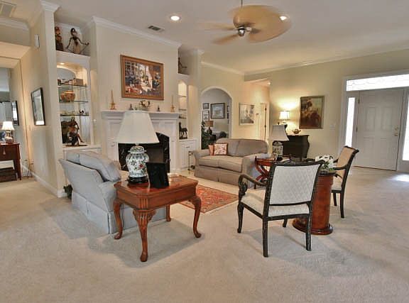 Awash with sunlight, this lovely, lushly landscaped 1 level enjoys a wide open floor plan with walls of windows bringing the outside in. Formal Living Room with fireplace, separate Dining Room, eat-in kitchen, office/den, reading room, l-shaped sunroom, 2-car garage. View of 14th hole Cupp Course.