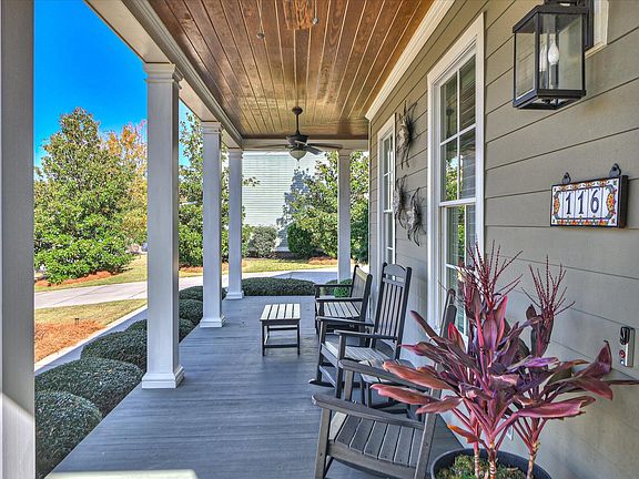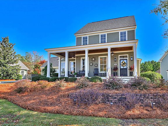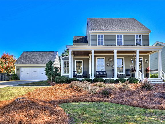 Effortless charm and design blend to create the perfect home in River Island! Beautiful architectural details throughout this lovely home. Large front porch w/ wood ceiling detail welcomes you to this craftsman bungalow gem. Hardwood flooring in great room, dining room, kitchen, breakfast, hallway, stairs and landing. Kitchen and breakfast area w/wood ceiling detail. Breakfast area with coffee station built in. Kitchen w/gas stove, island (w/a beautiful granite slab), farm sink, pantry and complimentary granite on the back cabinets. Laundry room with extensive cabinets, tile flooring and hanging bar. Double car garage is detached and accesses the home through a lovely covered porch into the mud room. Owner bedroom on main floor overlooking private backyard. Owner bath w/dual vanities, tile shower, garden tub & linen closet. Upstairs you will find 3 additional bedrooms plus 2 full baths. Gorgeous yard with patio and privacy fence! New HVAC upstairs 2022, new HVAC downstairs 2024, new roof2023.
