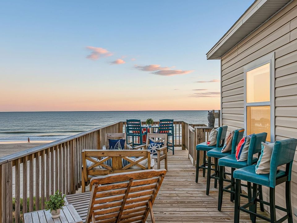 Beachfront condoAttached carportExpansive ocean facing decksSpacious bedroomsQuartz countersStylish kitchenTile backsplash