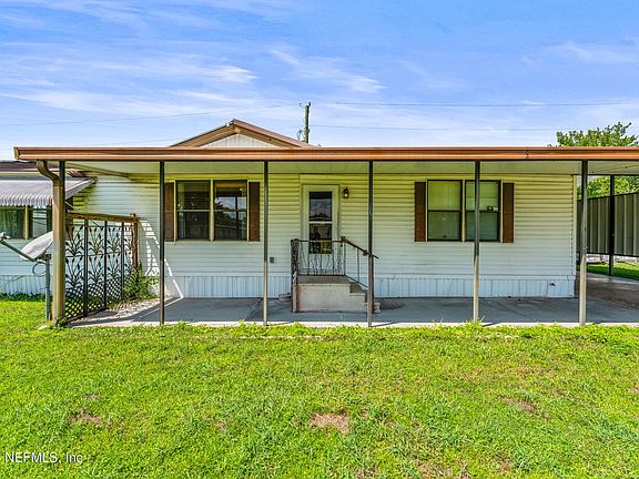 Adorable vintage Cantway doublewide manufactured home provides split bedroom plan with two bedrooms and two adjoining full baths, fully fenced front and back yards on a double lot, two sheds for storage, double carport and new refrigerator/water heater/washer/dryer. River Park Trailer Court features no lot rent, convenient St. John's River access in River Park West, affordable golf course and golf cart friendly community, and covered boat slips for monthly and annual rental. No rental restrictions could spell an AirBnB or short term rental income, with water and golf course access as a selling point. Enclosed porch off utility room is not included in ACed square feet, and offers an additional 288 sq ft of entertaining, craft or living space with private entrance off carport/back porch.