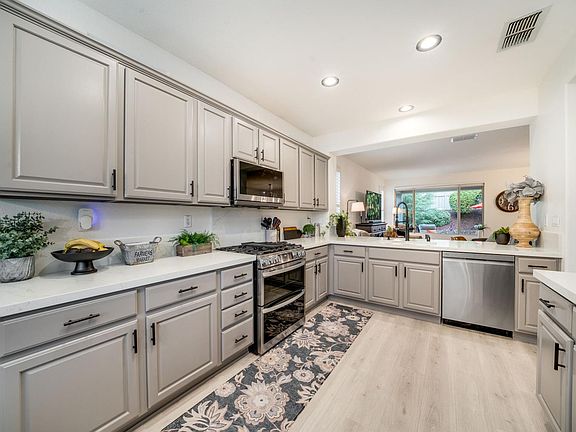 Welcome to Your Dream Home in the highly sought-after Sun City Lincoln Hills. This Newly Updated Almanor plan is perfectly situated on a cul-de-sac location and Ready for Move-in! Beautiful New Interior appointments include Fresh Interior Paint, Extensive LVP Flooring, Stylish Painted Cabinets with Trendy Hardware, Stainless Appliances, a Blanco Composite Sink, Upgraded Faucet, and Updated Door Hardware. Enjoy the Natural Sunlight from the Bay Windows in the Nook/Kitchen area. The spacious Great Room is perfect for entertaining with ample space for a large screen TV. Retreat to the Primary Suite, which features a Cozy Seating area nestled into the Large Bay Windows, a Stunning, Updated Primary Bathroom with Quartz Counters, a Full Height Tiled Shower, and a Walk-In Closet with Custom Shelving and Racks for all your storage needs. Step outside through the large Anderson Sliding Glass Door to your Private Oasis. The Spacious Patio area and oversized backyard offer plenty of room for gardening, entertaining, pets, or any outdoor activities you desire. With its Beauty, Spaciousness, and Tranquility, this home is a True Gem. Don't miss the chance to make it Yours!