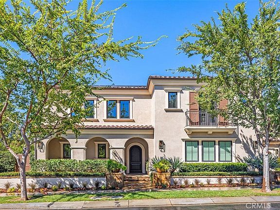 Nestled Amongst Tranquil Avocado Orchards and Rolling Hills, This Extraordinary Alta Vista Residence Embodies the Pinnacle of Modern California Luxury. Perched on an elevated corner lot with commanding hillside views, 116 Knob Creek rests within the exclusive Vistas enclave at The Groves of Orchard Hills. Boasting over $1 million in interior and exterior upgrades, this modern architectural masterpiece blends refined sophistication with effortless indoor-outdoor living. From the moment you arrive, the home’s modern interpretation of Spanish Colonial architecture is framed by lush landscaping, citrus trees, and a welcoming pedestrian approach. Inside, more than 6,000 square feet of open-concept living unfolds beneath soaring ceilings, where abundant natural light connects the interiors to serene surroundings. The dramatic foyer introduces a spectacular formal dining room with clerestory windows rising over twenty feet, flanked by dual glass staircases with sleek steel accents. Perfect for entertaining, this grand space opens to a private courtyard with a tranquil wall fountain. The magnificent great room, anchored by a 60-inch stone-clad linear fireplace, flows seamlessly to a resort-style California Room designed for alfresco gatherings. The chef’s kitchen is a showpiece appointed with Sub-Zero, Wolf, and Miele appliances, dual integrated refrigerator/freezers, quartz countertops, and custom Genoa cabinetry. Multiple pocket doors dissolve the boundaries between indoor and outdoor spaces, revealing a breathtaking backyard oasis. Outdoors, enjoy a full outdoor kitchen with Lynx professional BBQ, refrigerator, icemaker, and sink all overlooking a vanishing-edge quartz pool and 100 sq. ft. spa finished in luminous blue glass tile. The dual-zone yard is framed by citrus and stone fruit trees, modern planters, and inviting lounge spaces perfect for poolside evenings. A main-level guest suite provides comfort and privacy, while four ensuite bedrooms reside upstairs. The luxurious primary suite captures sweeping hillside views reminiscent of the Tuscan countryside, featuring a spa-inspired bath, private retreat, and expansive walk-in closet. A spacious bonus room with a built-in media center completes the upper level. Additional highlights include a rare four-car garage with epoxy floors and custom cabinetry, designer lighting, Baldwin hardware, luxury flooring, and a comprehensive smart-home system with cameras, automated shades, and LED mood lighting.