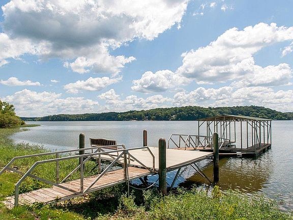 IF A PICTURE PAINTS A THOUSAND WORDS...this is definitely one you'll never forget..this jewel crowns the Kentucky Lake & TN River perfectly overlooking the waters from numerous vantage pointes..sunrise and sunset is always MAGICAL..Sunroom, Great Rm w.soaring ceiling, Dining Rm, 3 bedrooms, 2 baths, oversized 2 car garage, boat dock, plenty of concrete parking, room for expansion should you desire..boat ramp seconds away..