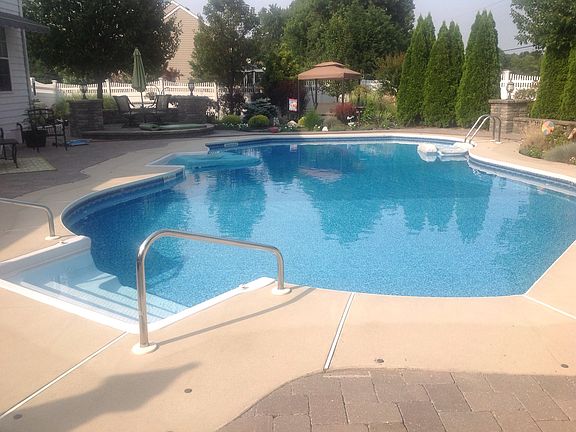 Corner lot. Single family home with beautiful 2-story foyer, wide turned staircase and hardwood floors. 9-foot ceilings on 1st floor, large family room w/gas fireplace, cathedral ceiling & country seat. Large kitchen with 42-inch Oatmeal cabinets, granite countertops including island with overlap, ceramic tile flooring & backsplash. 2nd floor laundry room, along with 3 large bedrooms. Luxurious master suite complete with 2 walk-in closets, large soaking tub & separate 5ft. Shower. Beautifully landscaped lawn with paver walkways & patio. In-ground pool surrounded by paver patio & beautiful gardens. Total privacy fencing surrounds the backyard.