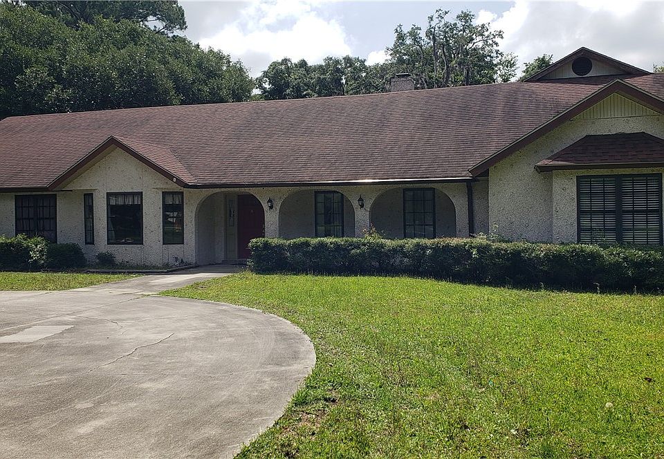 Come and see this beautiful property located on Marshes of Mackay Subdivision! It features five spacious bedrooms, two of which have their own in-suite full size bathrooms. There's 3.5 bathrooms total. This home has a Private Dining Room, Private Living Room, Family Room with a wood burning fire place and a huge Sun Room overlooking the pool! Plenty of space to entertain. There's a two car garage and a shed. This property sits on 1.5 acres with beautiful mature oaks, and it is zoned Forest Agriculltural. There's a bonus room upstairs and an attic space above the garage that can be converted into a second bonus room. The circular driveway makes it easy to drive in and out. Be ready to add your personal touches and make this home your very own!