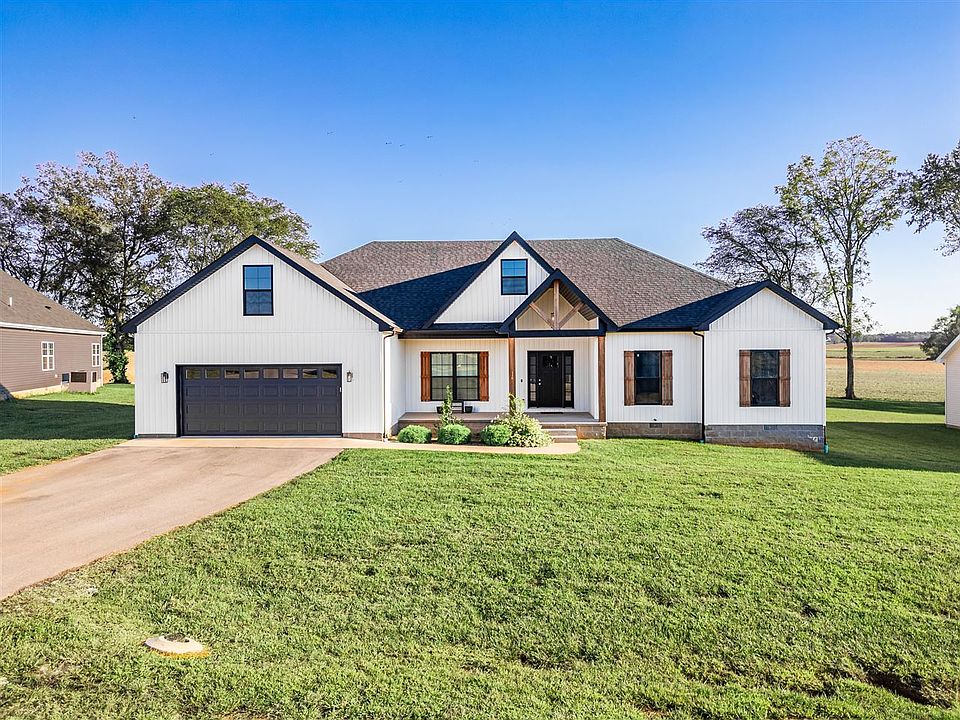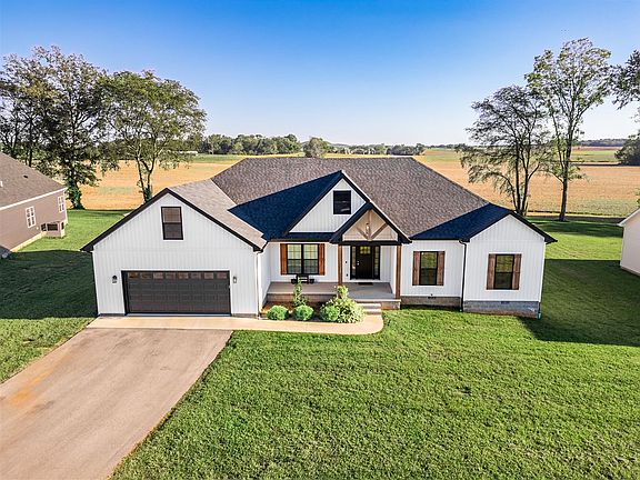 Step into this beautiful 2023 built home at 116 McCutchen Court in Auburn, offering the craftsmanship and style of a brand new build that’s already complete and move-in ready. This 4-bedroom, 2-bath, 2,095+/- sq ft home sits on a 0.43 +/- acre lot in one of Auburn’s most desirable new neighborhoods. From the moment you arrive, you’ll notice the stained wooden beams on the exterior, covered front porch, and paved driveway that give this home stunning curb appeal. Inside, the open-concept design features vaulted ceilings, luxury engineered hardwood floors, custom cabinetry with quartz countertops, and an oversized kitchen island — perfect for entertaining or family gatherings. The primary suite is a peaceful retreat with a huge walk-in closet and a luxury bathroom showcasing beautiful luxury vinyl tile flooring and a marble shower with a glass door. Enjoy quiet evenings on the expansive covered back porch, which overlooks your backyard that backs up to an open field with gorgeous views. The home also includes fiber internet, making it perfect for work or streaming. Conveniently located just 15 minutes from Russellville, 20 minutes from Bowling Green, and only a short walk to Auburn Park, this home combines small town charm with quick access to nearby cities and amenities. A rare opportunity to own a like new home in a great location, filled with premium finishes and thoughtful design throughout. Seller is a licensed realtor in the state of Kentucky.