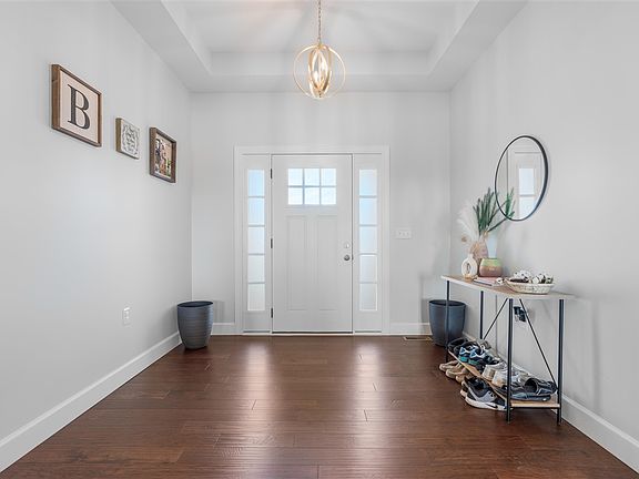 Huge walk-in closetExpansive covered back porchOversized kitchen islandPaved drivewayOpen-concept designCovered front porchVaulted ceilings