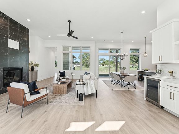 Designed for sophisticated entertaining and comfortable daily living, this newly built 3,746 sq. ft. residence in the exclusive gated Siena Creek community is a showcase of modern luxury. Situated on a generous 0.73-acre lot this 5-bedroom single-story home offers a peaceful setting and an intelligent layout. From the moment you arrive, you’ll appreciate the striking exterior with its stone siding. As you step inside, you will be greeted by high vaulted ceilings and wide windows that flood the space with abundant natural light. You will find the heart of the home is the expansive great room, centered around a premium fireplace. Picture yourself entertaining as this space flows directly into a gourmet kitchen, featuring sleek quartz countertops, a large center island with a breakfast bar, and high-end stainless steel appliances, including a wine cooler. This impressive space is completed by a casual dining area and notable chandeliers. explore the spacious primary suite, a private retreat featuring a luxurious primary bathroom with a freestanding garden tub, a large tiled walk-in shower, double vanities, and a walk-in closet. You’ll also find the home's split floor plan includes four additional well-proportioned bedrooms, one of which includes a private ensuite bathroom, ideal for a guest suite. A significant highlight is the spacious bonus room—we invite you to imagine the possibilities as a game room, media room, or a private second living space. Step outside to the covered back porch and discover its outdoor stone fireplace and ceiling fan, creating the ideal setting for quiet mornings or evening gatherings. Living here provides a relaxed Hill Country lifestyle, complete with access to a private community pool. This is more than a home; it’s an opportunity to join a premier community, just minutes from Lake LBJ, golf, and scenic trails, with membership options at The Club at Horseshoe Bay.