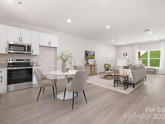 New Construction with Modern Farmhouse Style! Open and inviting, this home features LVP flooring throughout the main level and a bright white kitchen with quartz countertops, pantry, and plenty of recessed lighting. The huge living room is perfect for gatherings. Relax in the spacious primary suite with walk-in closet and a sleek bathroom with quartz, LVP flooring, and black hardware. Guest bedrooms are generous with double closets. Enjoy the rocking-chair front porch, back patio, 1-car garage, large driveway, and charming wooden shutters with stone wainscoting—style and functionality all in one!