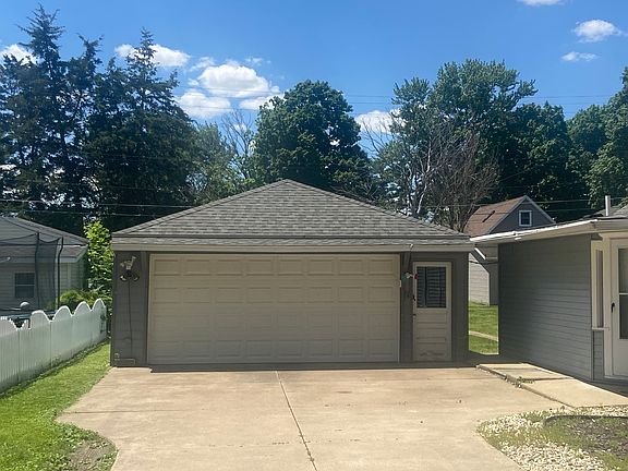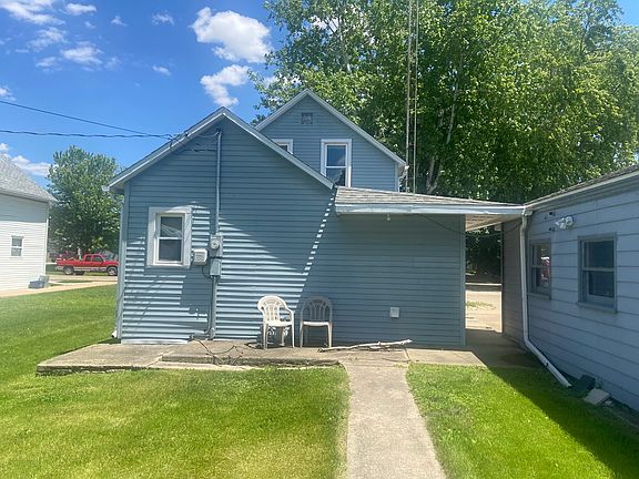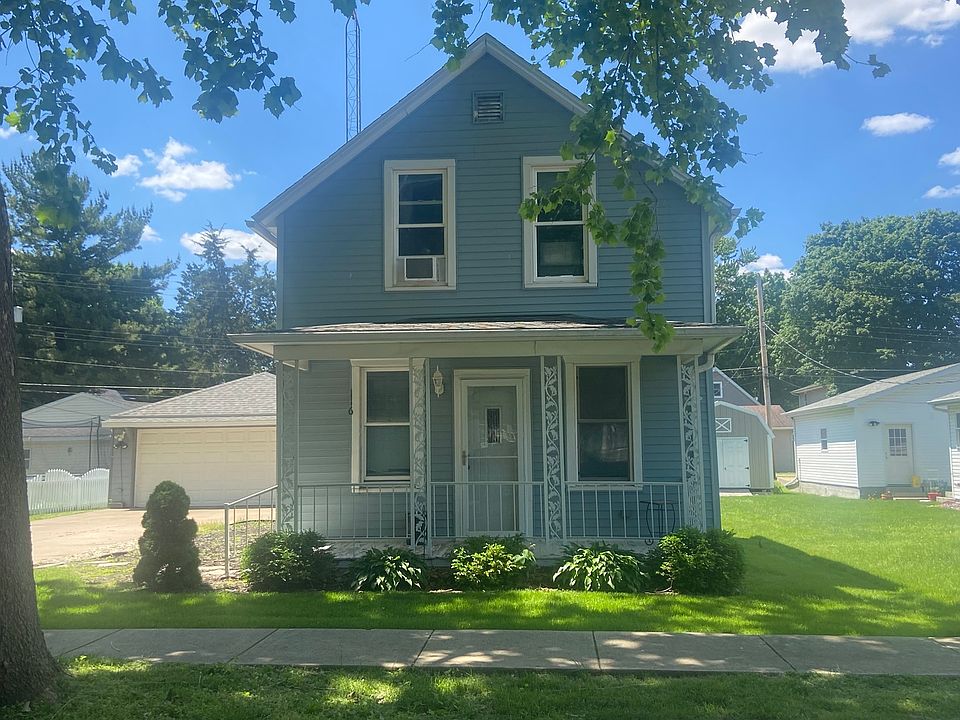 2 story vinyl sided home with 3 bedrooms 1 full bath and 2 half baths. Home has central air, laundry on the first floor, large 2 car garage and an extra building in the back for storage and a workshop with an overhead door with electricity.