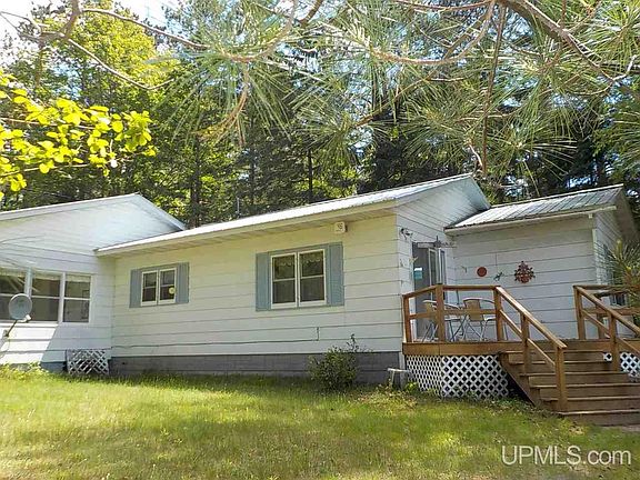 This charming 3-bedroom, 1-bath country cottage offers 121 feet of hard-bottom sandy frontage on beautiful Runkle Lake. Nestled in a peaceful wooded setting but just minutes from town, this home provides the perfect blend of privacy and convenience. The house and detached two-car garage both feature durable metal roofs, while recent updates include a 100-amp electrical service and a forced air furnace installed in 2020. Inside you'll find laminate flooring flows through the kitchen, dining area, hallway, and bath. Relax and take in the serene lake views from the treated deck or unwind in the cozy 11’x12’ screened porch. A circular gravel driveway offers plenty of parking, adding to the home’s convenience. Runkle Lake, home of the infamous Bass Festival, spans 76 acres, reaching depths of up to 50 feet, and is known for excellent Bass, panfish, and Walleye fishing. An old fence line marks both sides of the parcel. A newer dock was added a couple of years ago to enjoy the waterfront. This inviting lakeside retreat is an affordable opportunity— don’t miss your chance to own a piece of U.P. waterfront! Updated photos to come. Some are from previous rental listing.
